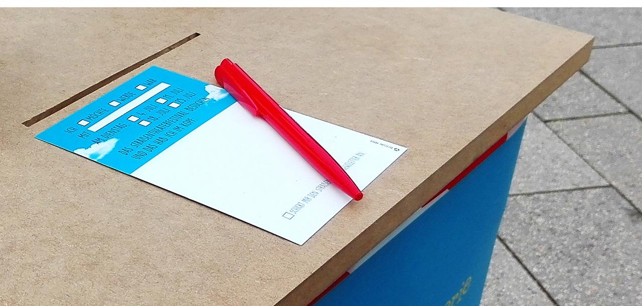Bei jeder Veranstaltung sammeln wir ausgefüllte Postkarten ein, auf denen Ihr Lob, Kritik, Wünsche oder was auch immer mitteilt. Euer Feedback ist wichtig für uns, um Eure Meinung zu hören, Verbesserungen zu machen und Geldgebende fürs nächste Mal zu gewinnen. Deshalb Danke dafür!